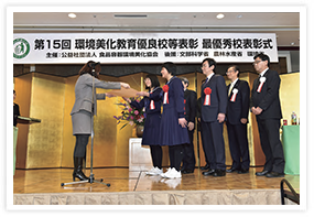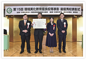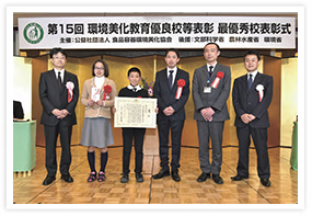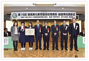 この表彰は、環境美化教育に独創的、継続的かつ熱心に取り組み、「公共の場所の美化」または「飲料あき容器等のリサイクル」を実践し、地域の環境美化に大きく寄与している小・中学校等を選出し表彰するものです。