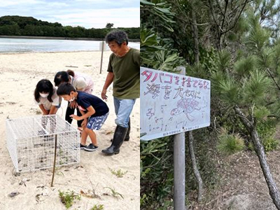 遠浅の白い砂浜が約3kmにわたって続く脇本海水浴場。県内外から多くの観光客が訪れ、東シナ海に沈む夕陽スポットとしても知られている。その景観を守るために、多様な取り組みを実施。砂浜にはペットボトルや空き缶などの漂着ごみが広範囲に散乱しており、長年にわたりごみ回収に励む。また、きめの細かい砂浜には貴重な動植物が生息している。中でも、アカウミガメやシロチドリが産卵に訪れる浜辺としても有名で、児童は地域団体の協力を得て体験学習に取り組む。絶滅危惧種のシロチドリは、ヒナの巣立ちを確認できない年が増加。要因は複数考えられ、砂浜の減少やヘビによる捕食などさまざま。砂と保護色の卵は、人が気づかずに踏んでしまうケースもあり、そうした現状を学んだ児童は、注意を促すポスターを作り、住民とともに海岸に設置している。近年は、アカウミガメの産卵の減少も深刻だ。児童は、漂着ごみに混じるマイクロプラスチックにも目を向け、回収実験を開始。環境問題を自分事として捉え、ウミガメやシロチドリが訪れる豊かな砂浜を取り戻すため、未来への責任を胸に刻んでいる。