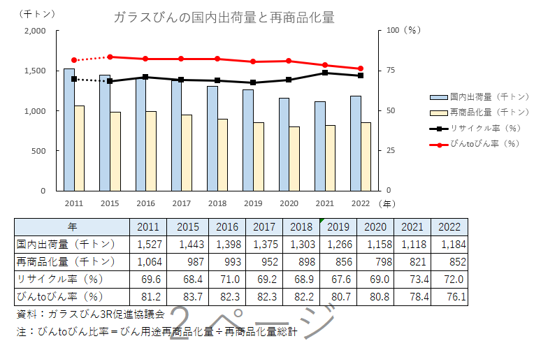 飲料容器はリサイクルのシステムが確立されており、リサイクル率は向上しています。