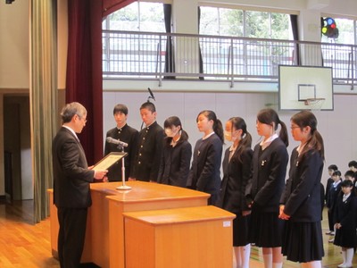 本日は馬込東中学校、環境美化教育優良校の受賞、誠におめでとうございます。