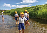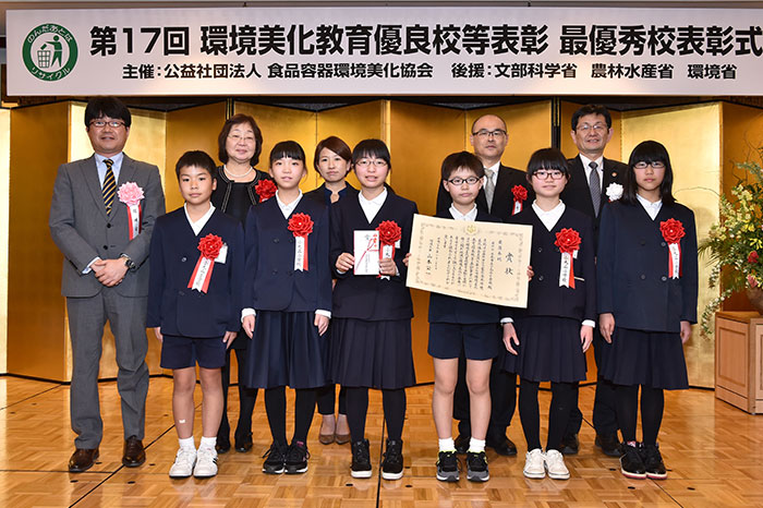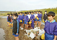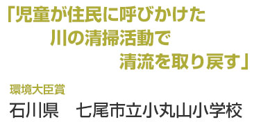 市内を流れながら七尾湾に注ぐ御祓(みそぎ)川は十数年前、県下一のドブ川と呼ばれていたが住民たちの努力により徐々に改善してきた。その川を校区に持つ同校の児童たちは、もっと美しい川にしようと地域と連携して川の水質・水生生物調査や清掃活動を行っている。まずは、川の現状を把握するために、主に6年生児童が、川の上流、中流、下流に出向き、定点で棲息する生き物を毎年調査。環境保全意識は自然と高まり、地域で開催されるさまざまな美化活動に参加するようになった。こうした活動を重ねる中で、「今度は自分たちができることを企画しよう」との思いが生まれた児童は、「御祓川クリーン大作戦」を企画。地域住民に清掃協力を募る新聞を手づくりし、町会長を通じて校区全世帯に配布するほか、川への関心が低い世代向けにフェイスブックで発信するなど、広くPRしているのが最大の特徴だ。参加者は年々増加し、児童の活動を後押しする動きも加速。最後に、児童は5年生に引き継ぎながら自分たちの願いや思いを次に託している。
