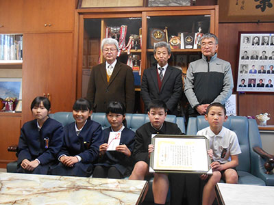 第17回環境美化教育優良校等表彰事業において、全国の小・中学校の中から優良校に選ばれた三豊市立笠田小学校の授与式が行われました。この表彰に関して、香川地連にご協力いただきました。
