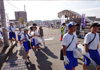 地域の名所、春日山城跡周辺の清掃に2008 年から取り組む。自主的なボランティア活動にもかかわらず、参加者は年々増え続け、今年度は住民200 人に対して、270 人もの生 徒が集まった。春日山で毎年行われる「謙信公祭」では、実行委員会を立ち上げ、生徒は企画提案から広報、準備、出演などさまざまな形で参加。春日山城跡保存整備促進協議会 と連携しながら、自分たちが住む地域を盛り上げようという意欲が向上している。同じく 地域貢献活動の一つである、春日山城跡の修復作業「土の一袋運動」を2010 年から開始。