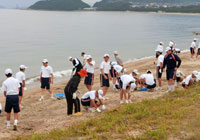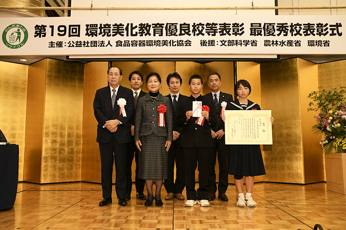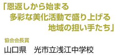 「あさなえ J ネット」と名付け、地域とともにある学校づくりを目指して、学校・地域・家庭の連携強化を図っているのが最大の特徴である。運営の一端を担う生徒は、活動を振り返りながらアイデアや意見を出し合い、次の取り組みに生かしている。AYC 活動と体力作りが目的の「早朝元気クラブ」がコラボした環境美化活動もその一つで、一丸となって地域を美しくしていこうという意識が向上している。徐々に参加者が増えてきた住民から感謝の声が上がる中で、自己有用感が高まった生徒は、市主催の海岸清掃や、松林の保全ボランティア活動にも意欲的に取り組む。