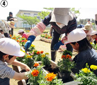 海岸では、児童が地道に美化活動を行っていることが周知啓発につながり、昔に比べてポイ捨てごみは減少しているものの、海外の飲料容器などの漂着ごみが目立つようになった。町においては、主に1、2年生が、お世話になっている施設に感謝の意を込めて季節の花々を植えて交流を図るなど、地域に彩りと活気をもたらしている(④)。
