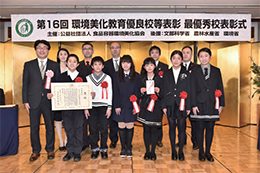 海沿いに海浜植物が咲き誇る種差海岸は2013年、三 陸復興国立公園に指定された。その景勝地に抱かれる ように建つ同校では、国立公園認定の20年以上前から さまざまな美化活動に取り組んできた。1991年から開 始したのが「ごみ拾い登校」で、児童は通学路に散乱し ているペットボトルなどを回収しながら登校する。住民 の協力を得て行うアルミ缶リサイクルも、長年にわたる取 り組みだ。こうした活発な活動は社会性をも磨き、児童 はいっそう地域へ目を向けるようになった。2009年から は地域団体の指導の下、海岸沿いに繁殖する特定外来 生物「オオハンゴンソウ」の駆除を開始。同校が参加し たのが契機となり、他校や住民の協力体制が整った結 果、駆除の効果が現れてきた。地域を自慢できるように なった児童は、観光客をおもてなししようと、地元産のふ のりや海藻を使用したお菓子を作って販売するプロジェ クトをスタートさせた。同校の児童数は26名と減少を続 けるが、地域の積極的な支援を受けて、ふるさとを守り 育てる地域おこしに発展している。